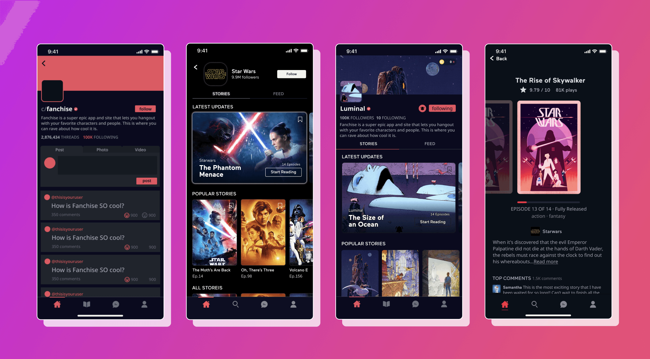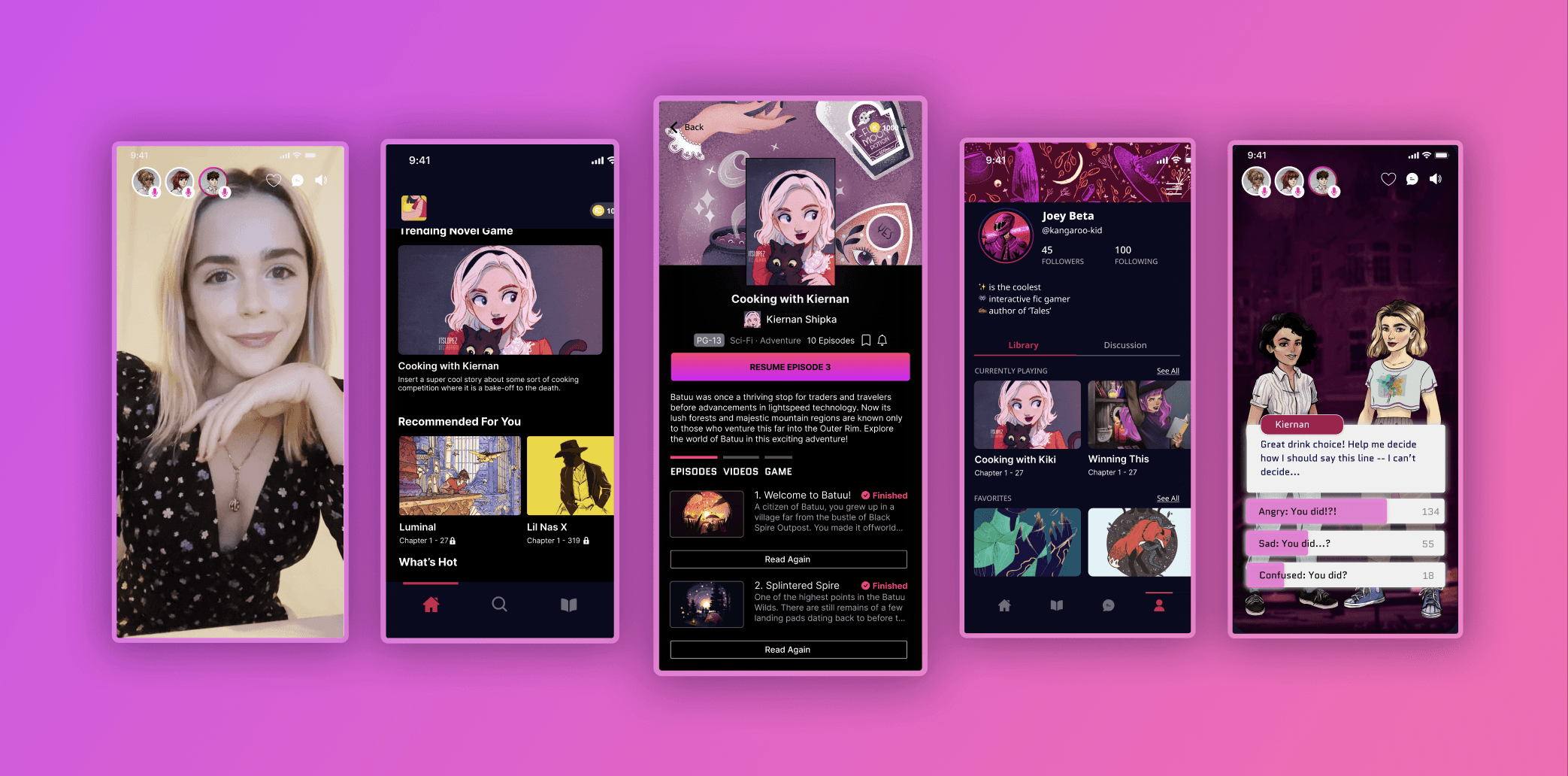 Founding designer and head of design, one of the founding members alongside Katie Mishra, Maria Zlatkova, and Kiernan Shipka. We raised $3.3M at a $40M valuation from Greylock, Human Capital, Michael Ovitz, and others. Built AI story engines that turned ideas into playable visual novels. Beta launched with a Disney Star Wars spin-off IP. 30K users. I ran over 100 hours of user research and helped drive a 40% increase in retention. I was nineteen when we started this.